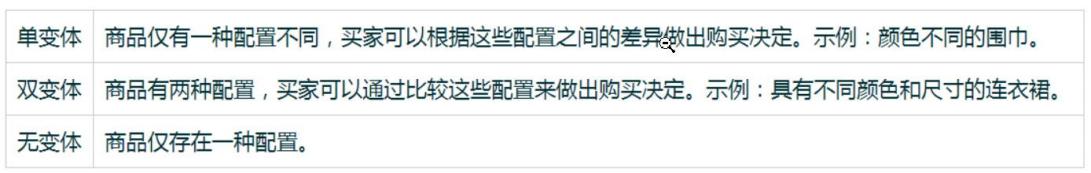 一般变体属性分为 颜色/花色、尺寸、数量、材质、款式等。