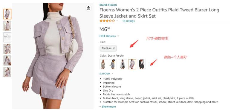 ③变体属性:个人喜好还是硬性需求? 尺寸、颜色、材质、手机壳、 裙子