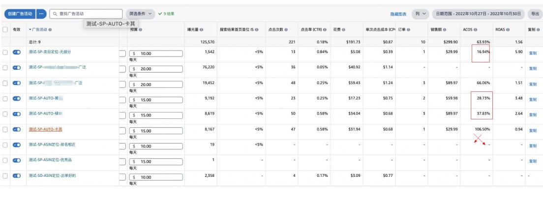 看广告组 ,分别对比所有的产品的 acos 值 ,是否自己满意 ,如果都满意 ,都可以留下来 ,继续打广告 , 也把最好的一个单独拿出来,原广告活动不变,多开一个广告活动,单独拿出来,给到一个好的位置继续 跑数据 ,如果差就剔除, 留下最开始的一组