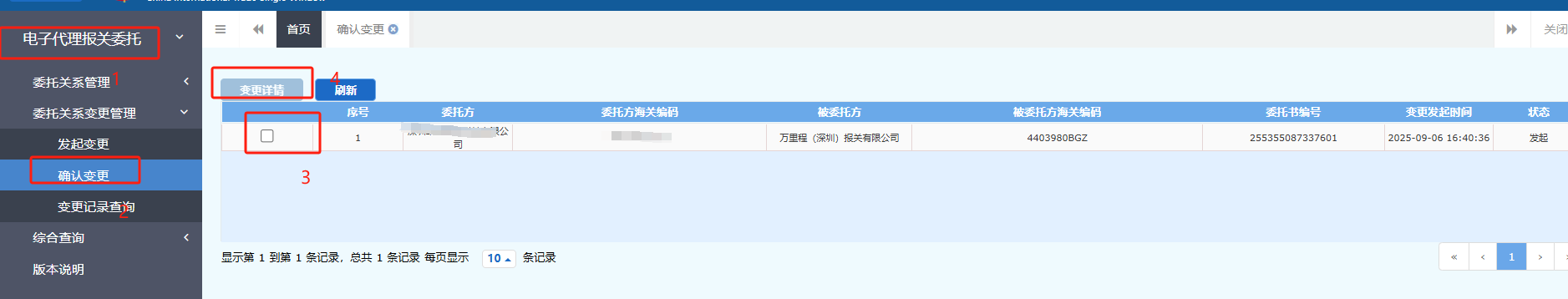 点击确认变更,勾选需要接收变更数据,点击变更详倩,核对详细,接收变更